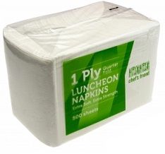 SERVIETTE 1PLY WHITE 1/4FLD LUNCHEON 500 (6CTN) GREEN CHOICE