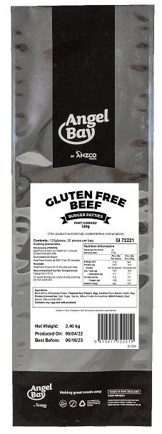 PATTIES BEEF 120GM GLUTEN FREE 20SLV (3CTN) A/BAY