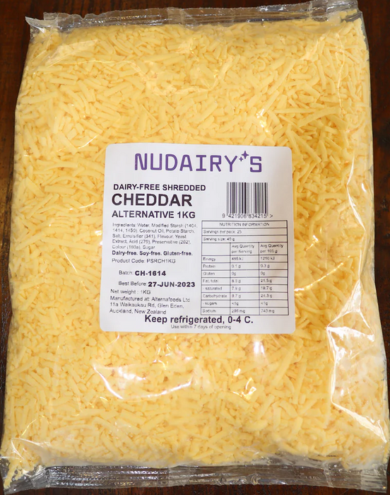CHEESE CHEDDAR SHREDDED DAIRY FREE 1KG 10CTN NUDAIRY