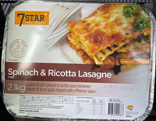- MEAL SPINACH & RICOTTA LASAGNE 2.1KG (6CTN) 7 STAR